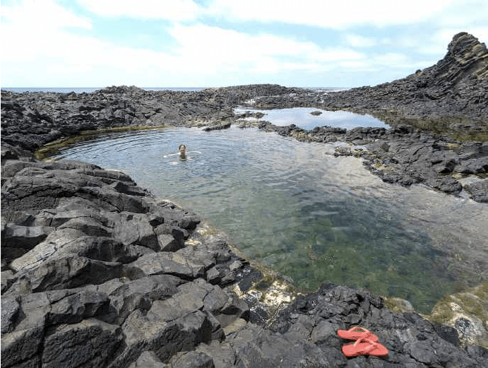 - Unique geographical features like lava rock swimming pools that seemingly no one else on the planet has ever waded into